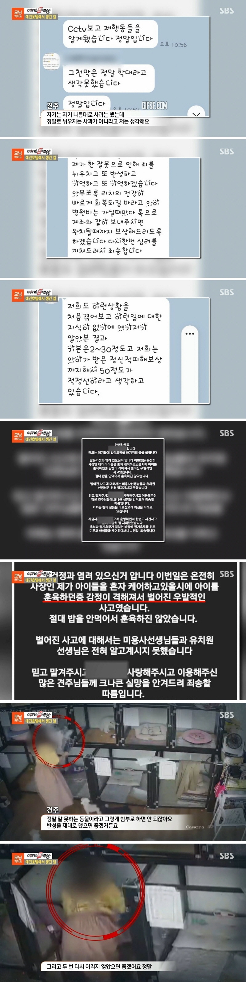 다시 확인한 CCTV 속에는 애견 호텔 직원이 강아지를 향해 슬리퍼를 던지거나 폭행하는 장면이 담겼고, 애견 호텔 직원은 견주에게 사과했다.