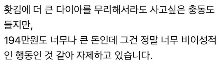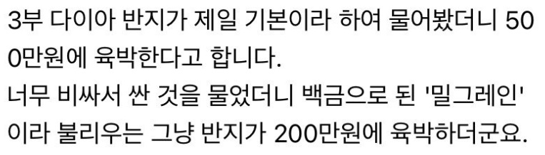 A씨는 “이거랑 똑같은 걸로 결혼반지 맞추기로 예랑이랑 이야기 다 끝났거든요.” 라고 전했다.