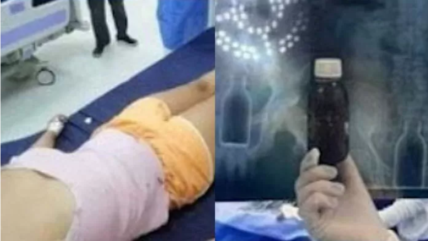 수술 후 그녀의 몸속에서 빠져 나온 유리병의 크기는 의료진도 기겁하게 했지만 그녀는 빠른 수술로 위험한 고비를 넘겼다고 전해졌다.