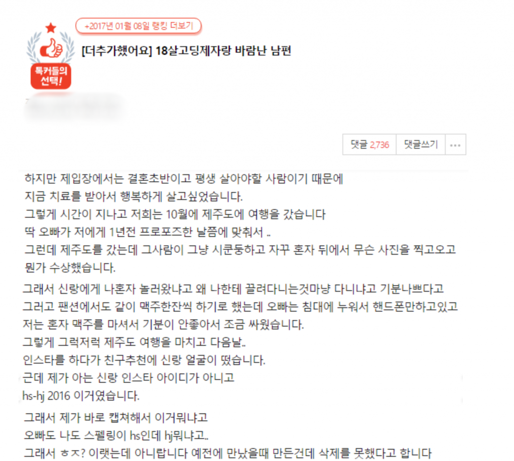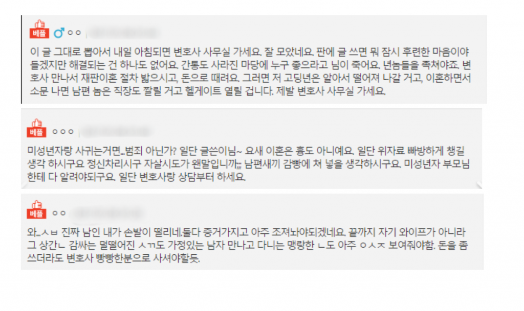 자신의 남편이 18실 여고생 제자와 바람이 났다며 글을 올렸다.