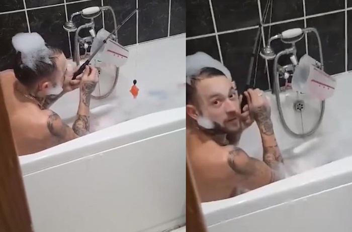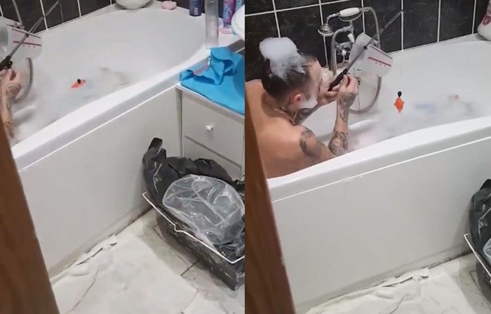 호기심에 카메라를 들고 화장실에 들어간 여성은 거품이 가득한 욕조에서 한가로이 목욕을 즐기는 남편을 발견했다.