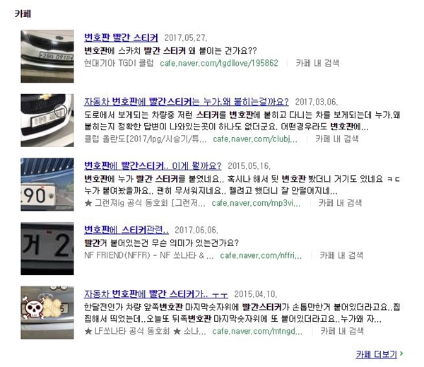 이는 포털사이트에 ‘번호판 빨간 스티커’를 검색해보면 최근 날짜에 올라온 비슷한 유형의 게시물들을 쉽게 찾아볼 수 있는데 꽤나 큰 중대 사안이었다.
