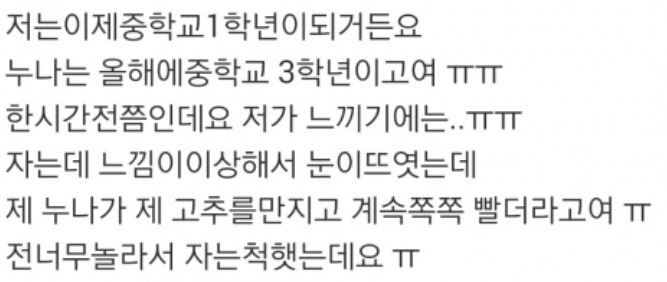 해당 게시물은 중학교 1학년 한 남학생의 사연으로, 친누나가 자신에 소중한 부분으로 이상한 짓을 한다며 고민을 올렸다.