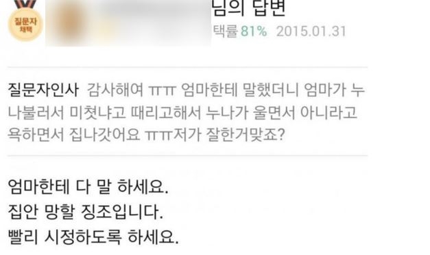 중 1 남학생의 고민글에는 해결책을 제시하는 답변이 달렸고 남학생은 답변자에게 자신의 후기를 알렸다.