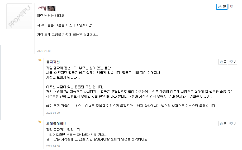 이를 본 온라인 커뮤니티 네티즌들은 “정말 이러면 안 되지만 아이도 그렇고 부모님도 그렇고 정말 힘들어질 것 같네요.”, “저희 가족도 다운증후군 환자가 있는데 행복하게 살고 있습니다.”라는 반응을 보였다.