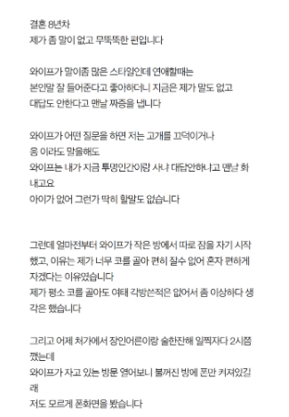 글쓴이는 결혼 8년차로 말이 없고 무뚝뚝한 편이라고 한다.