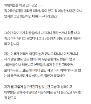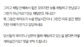 한 온라인 커뮤니티에 “와이프가 채팅하는 것을 걸렸습니다” 라는 글의 제목이 올라왔다.
