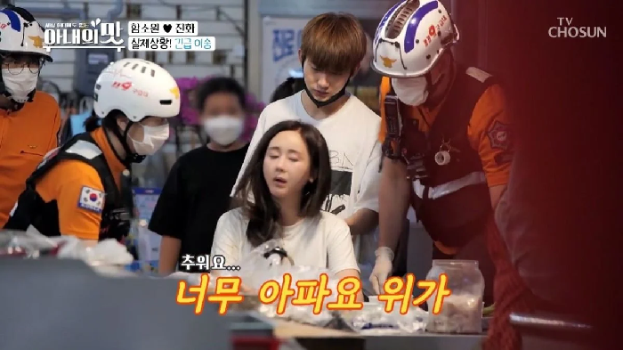 스튜디오에서 함소원은 “응급처치 후 괜찮아졌다. 저날 너무 더웠는데 냉수를 들이켜서 그런 것 같다. 원래 몸이 워낙 차서 한여름에도 스타킹을 신고 긴 팔을 입는다”고 설명했다.