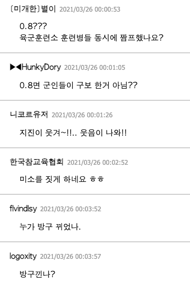 군인들이 매우 많기에 지진의 강도를 본 네티즌들은 군대에 관한 댓글을 단 것으로 보인다.
