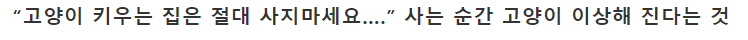 작성자 A씨는 “고양이 키우는 집은 절대사지마세요” 사는 순간 고양이 이상해 진다는 것” 라는 제목의 글로 많은 이들의 궁금증을 증폭시켰다.