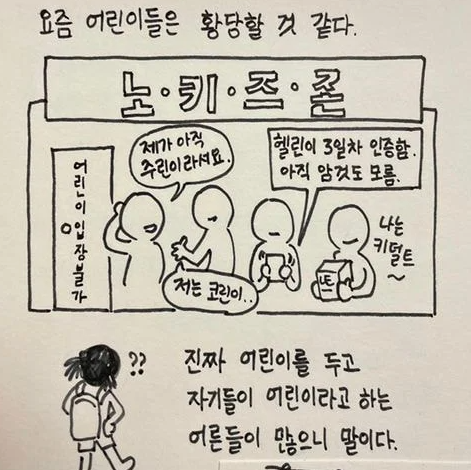글쓴이는 “요즘 어린이들을 황당할 것 같습니다. 왜냐면 진짜 어린이를 두고 자기들이 어린이라고 하는 어른들이 많아져서입니다.”라며 이야기를 시작했다.