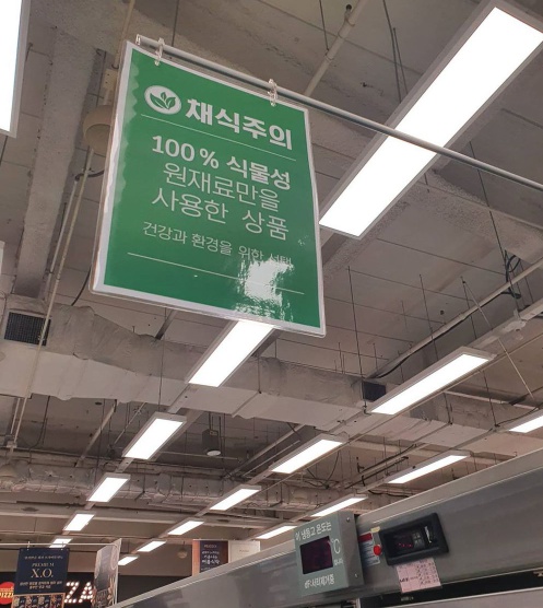 글쓴이는 “최근 일부 매장에 채식주의 코너가 생겼다”며 “100% 식물성 원재료만을 사용한 상품”이라고 설명했다.