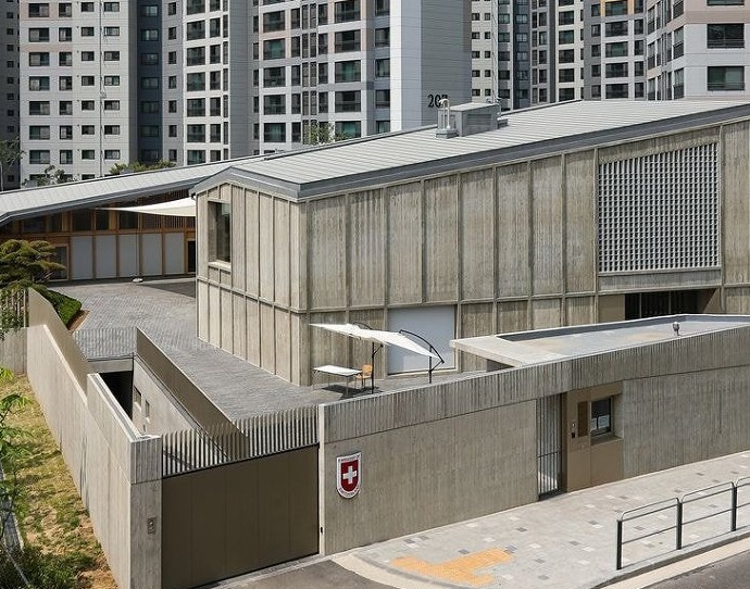 최근 온라인 커뮤니티에 2019년 5월에 신축한 주한스위스 대사관의 모습이 올라와 누리꾼들의 주목을 받고 있다.