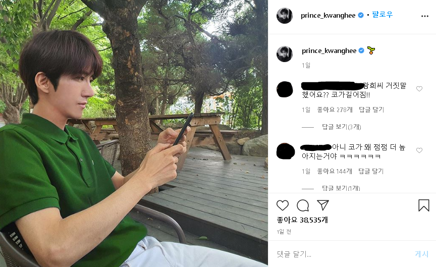 지난 25일 그룹 제국의 아이들(ZE:A) 멤버 황광희가 자신의 인스타그램을 통해 근황을 공개했다.