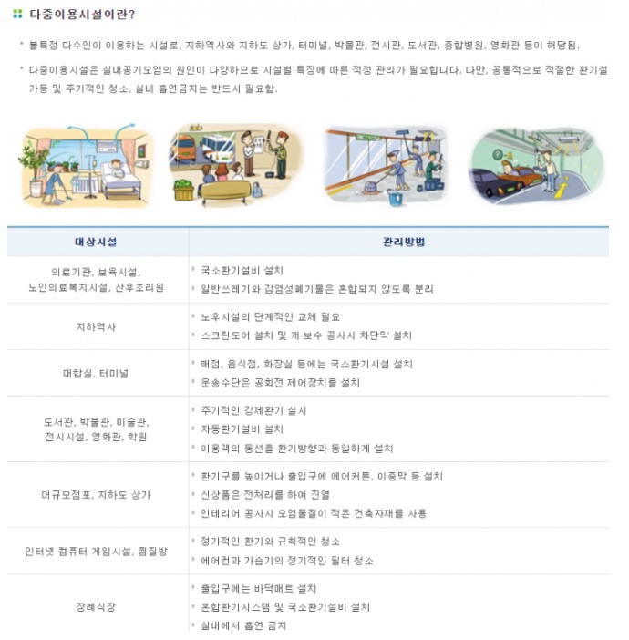 다중이용시설은 불특정 다수인이 이용하는 시설로 지하도 상가, 터미널, 박물관, 전시관, 영화관, 종합병원, 도서관 등이 해당된다.