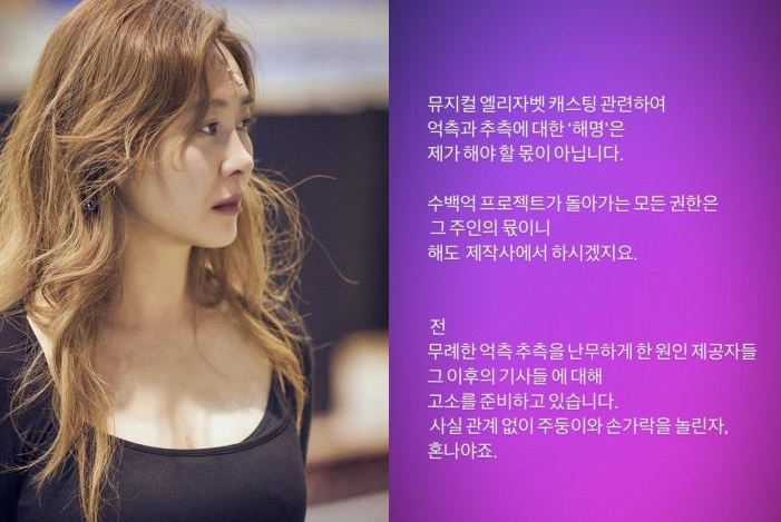 ‘엘리자벳’ 주연 자리에서 밀려난 배우 김소현도 자신의 SNS를 통해 의혹에 대해 글을 작성했다.