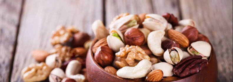 아몬드나 호두, 땅콩과 같은 견과류는 오메가 3 지방산과 불포화지방, 비타민 E가 들어있다.