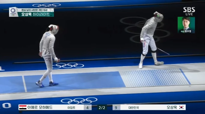펜싱 남자 사브르 세계랭킹 1위 오상욱이 출전한 펜싱 경기 도중 벌어진 돌발상황에 해설진들이 가슴을 쓸어내리는 일이 있었다.