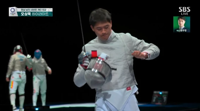 펜싱 남자 사브르 세계랭킹 1위 오상욱이 출전한 펜싱 경기 도중 벌어진 돌발상황에 해설진들이 가슴을 쓸어내리는 일이 있었다.