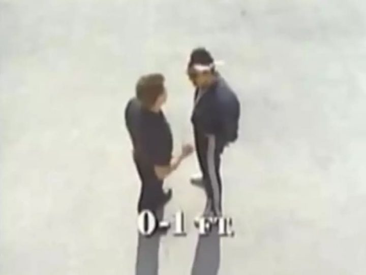 글쓴이는 경찰과 범인 사이의 거리에 따라 예로 설명을 했는데, 1.5m 정도 거리에서는 “바로 앞에서 얼굴을 마주보고 있을 때는 뭔 짓을 하기도 전에 경찰이 죽고, 경찰이 총을 뽑으려고 하면 뽑기 전에 찔려 죽는다”고 말했다.