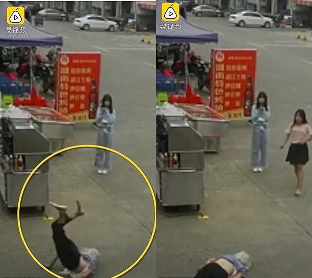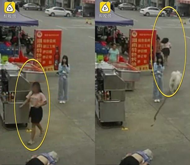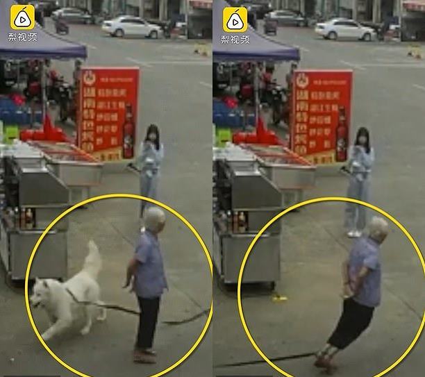 지난 18일(현지 시각) 중국 SNS 웨이보에 한 할머니가 밖에서 개 목줄에 넘어진 모습의 영상이 올라왔다.