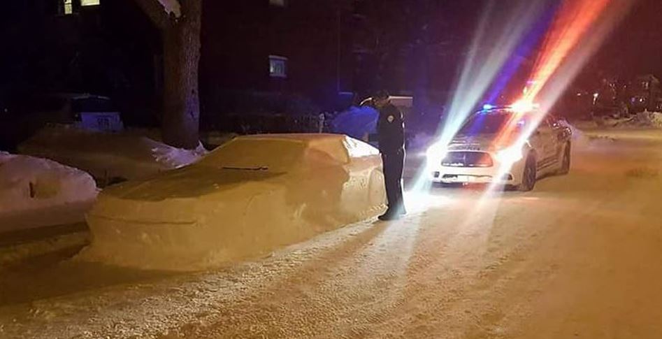 가까이 다가가서야 경찰은 눈 자동차가 진짜 자동차가 아니란 것을 깨달았다.