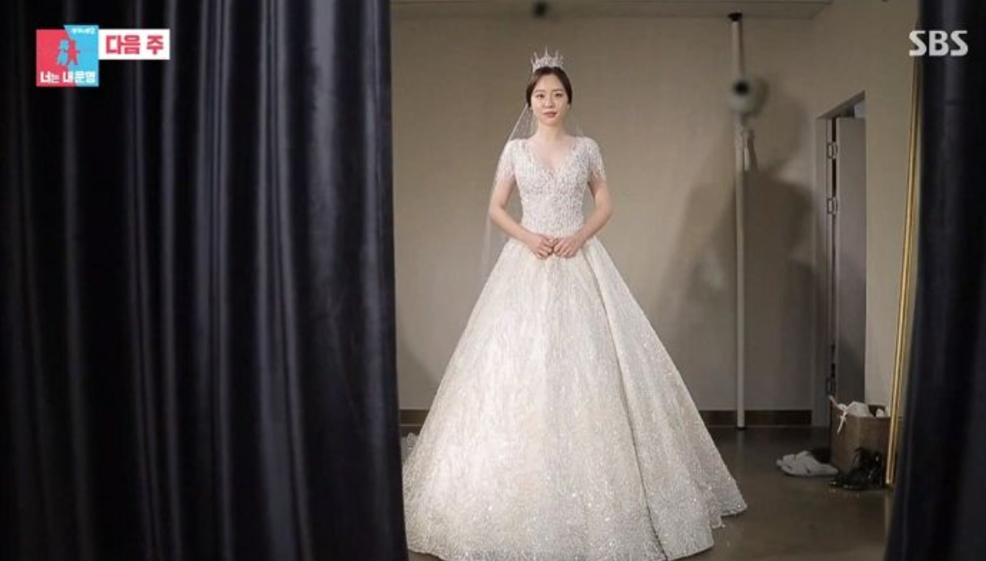 이날 박성광 이솔이 부부는 턱시도와 웨딩드레스를 보러 갔고, 이솔이는 “떨린다”며 화려한 큐빅으로 장식된 첫 번째 웨딩드레스를 입고 나왔다.