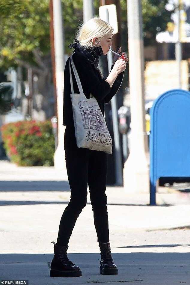 해당 게시물에는 한 금발 여성이 입에 담배를 물고 거리를 다니고 있다.