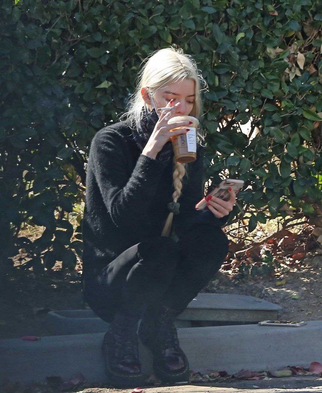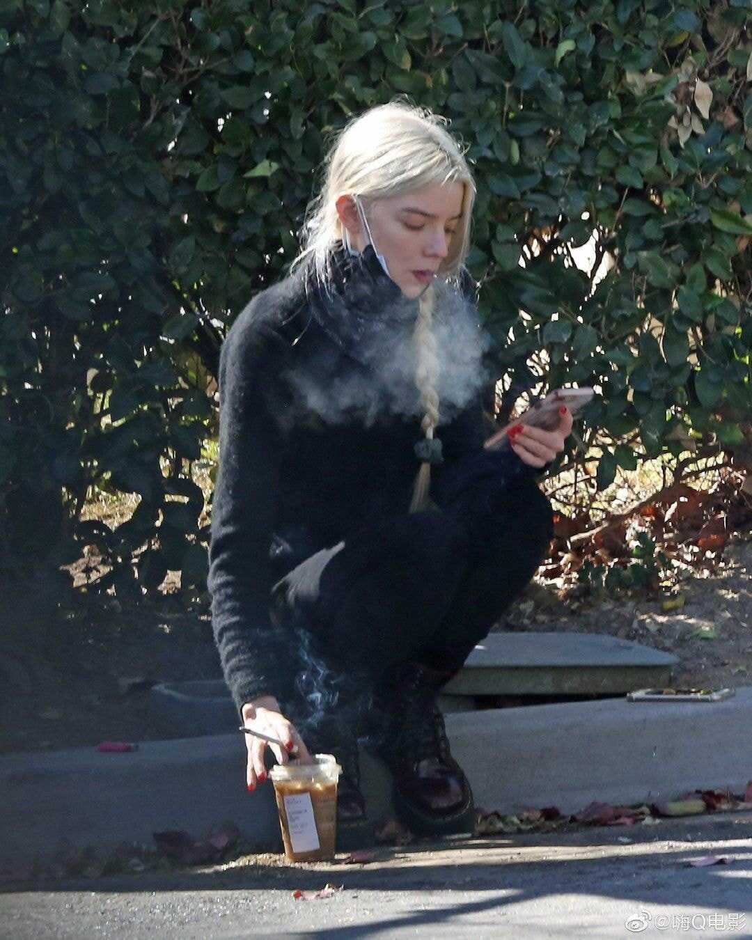 길거리에서 커피 담배하는 유명 여배우.