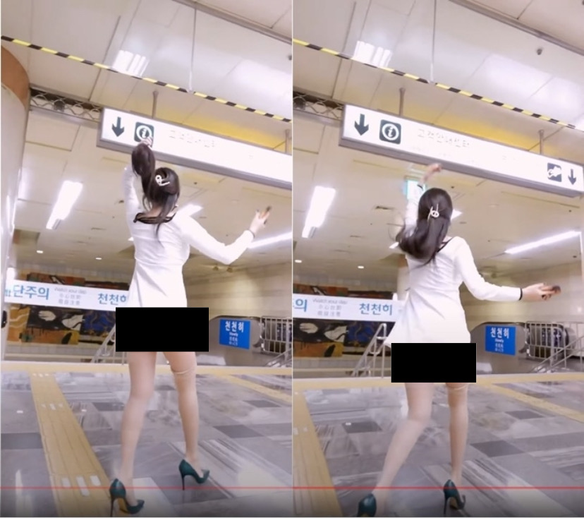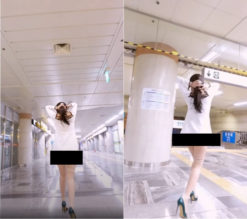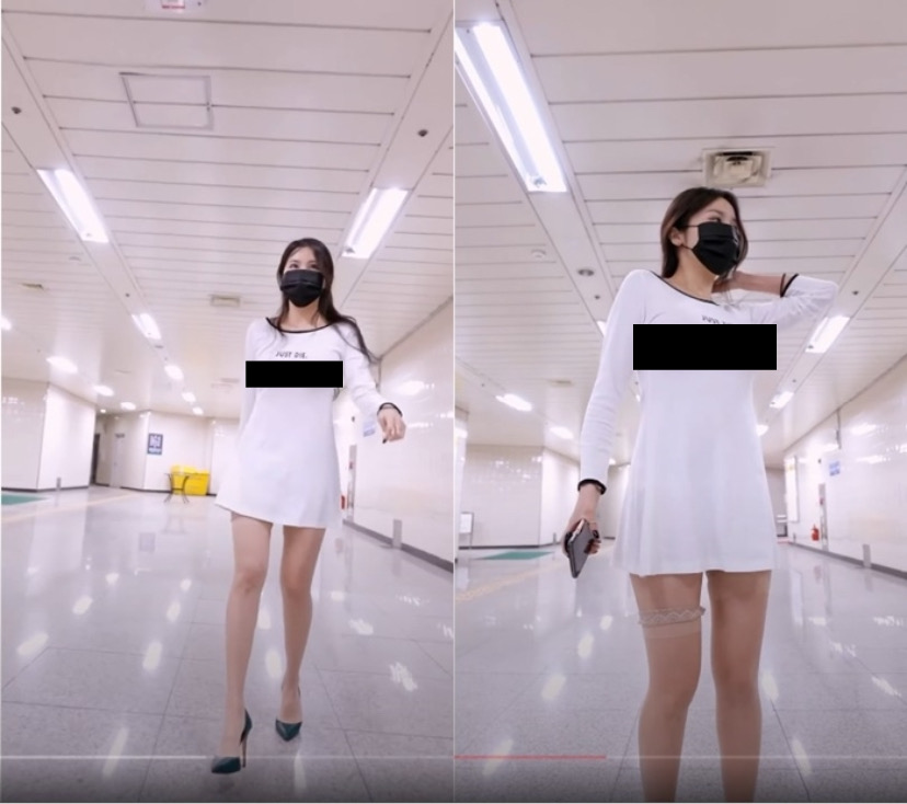 해당 영상 속 유튜버 ‘제나’는 속옷을 걸치지 않은 상태로 짧은 원피스 하나만 입은 채 사람들이 많은 지하철역으로 향했다.