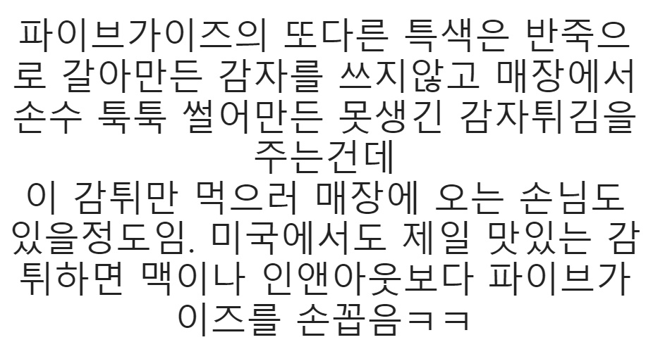 파이브 가이즈 버거즈 앤 프라이즈는 1986년에 제리 머렐, 제이니 머렐 부부가 개업한 미국의 햄버거 패스트푸드 레스토랑이다.
