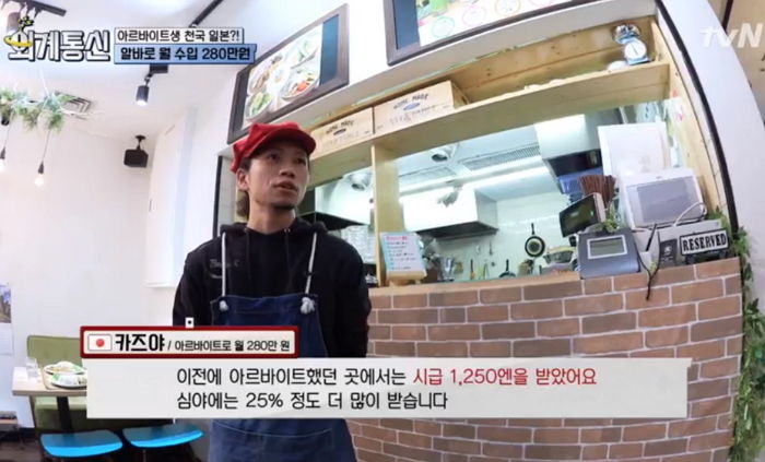 카즈야씨는 “전에 아르바이트했던 곳에서는 시급 1,250엔(한화 약 1만 2,196원)을 받았다.