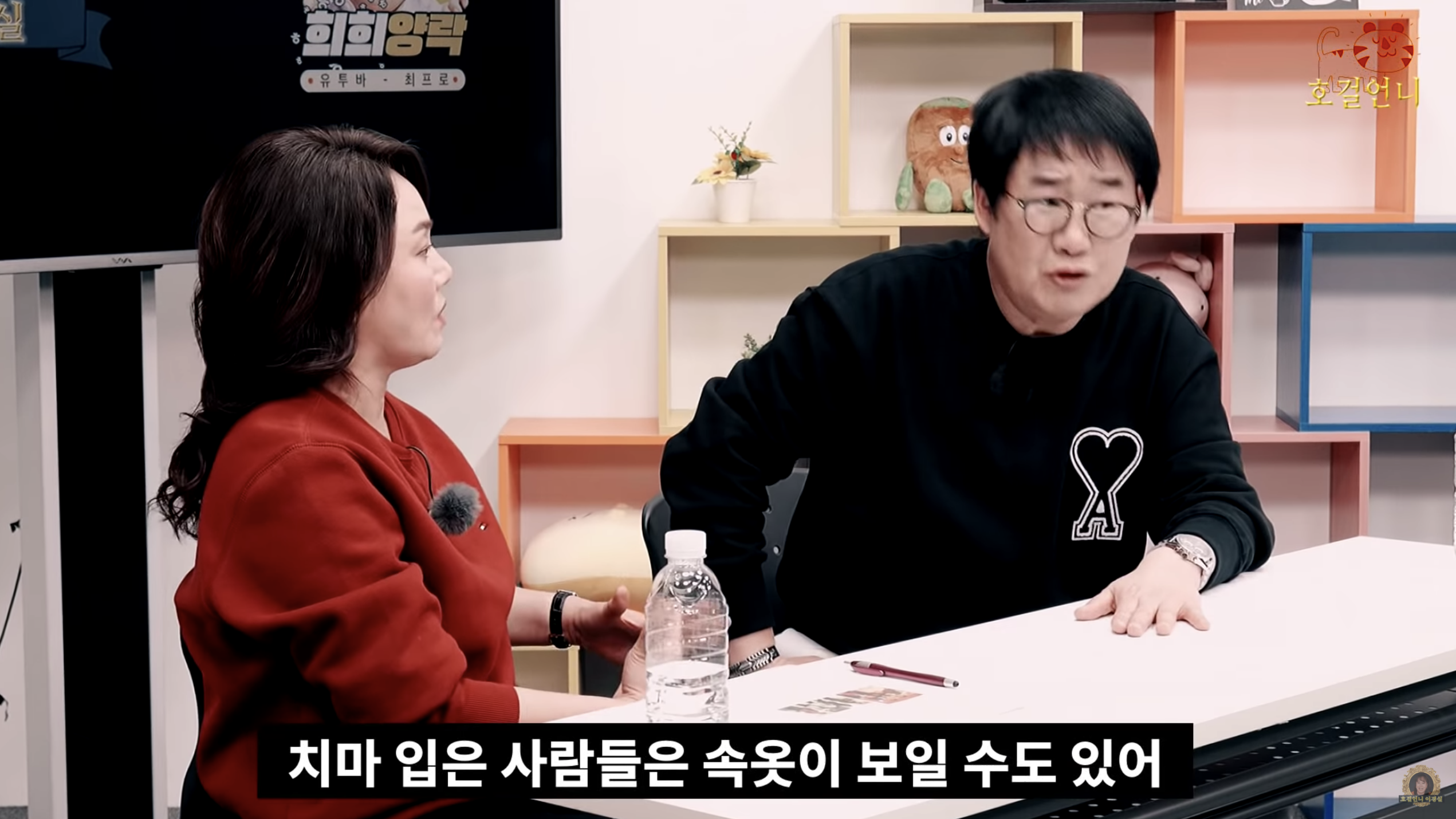 그는 “무대가 알루미늄 무대여서 거울처럼 비치는 경우가 있었다. 그러면 치마를 입은 여자들은 속옷이 보일 수도 있다. 그래서 굉장히 조심스럽게 방송을 하는데 어떤 선배 하나가 나한테 치마를 벌려보라고 했다. 무슨 색깔 입었는지 본다고 하더라”라고 얘기를 했다며 충격을 안겨주었다.