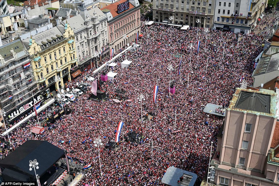 지난 16일(현지시간) 영국 일간 데일리메일(DailyMail)은 월드컵을 무사히 끝내고 돌아온 선수들에게 환영 파티를 열어준 크로아티아 국민들의 모습을 영상과 사진으로 전했다.