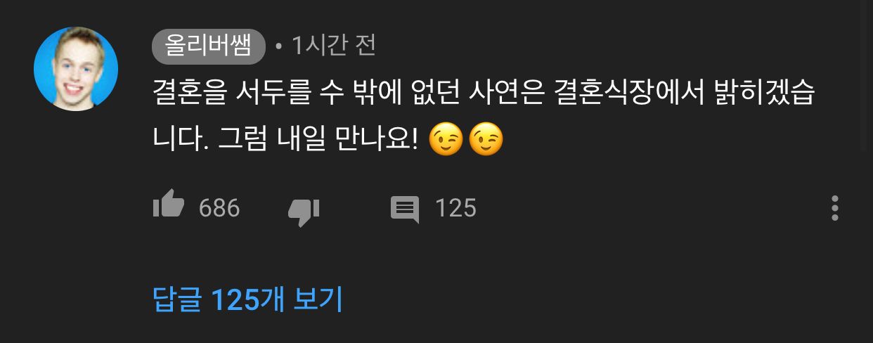 이어 그는 댓글로 “결혼을 서두를 수 밖에 없던 사연은 결혼식장에서 밝히겠다”라며 “5일 만나자”라고 글을 남겨 네티즌들의 궁금증을 자아냈다.