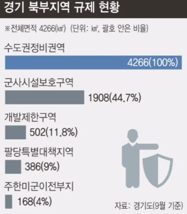 또 “군사규제는 불가피해도 최소한 수도권 규제는 과감하게 풀어줘야 한다는 의견이 많다. 군사규제야 휴전중이니까 필요하고 유지해야겠지만 이중으로 규제적용하는 건 아니라고 생각한다”라고 주장했다.