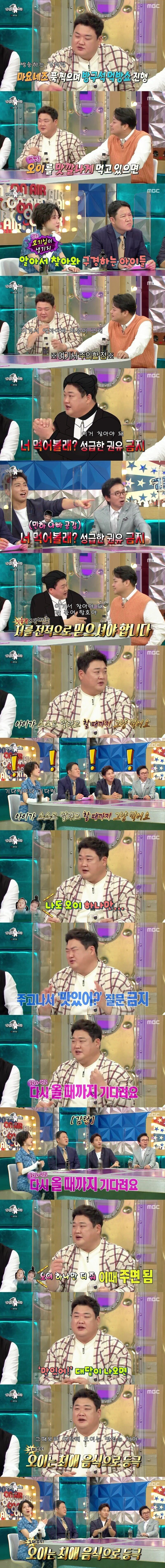 개그맨 김준현은 “우선 아이들에게 오이를 먹이고 싶으면 제가 먼저 오이를 맛있게 먹는 모습을 보여줍니다.”라며 이야기를 시작했다.