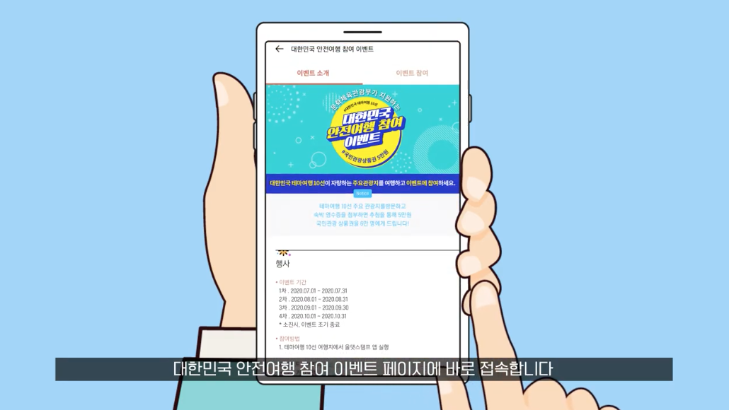 이번 이벤트는 문화체육관광부와 한국관광개발연구원이 코로나19 사태로 침체된 지역경제를 활성화하고 안전여행 문화를 확산하기 위해 추진하는 범국민 캠페인의 하나로, 총 6만명에게 일인당 5만원씩 총 30억원의 경품을 주는 역대급 이벤트다.