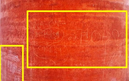 새겨진 낙서의 내용은 ‘WANNA ONE’ ‘강다니엘’ ‘이대휘’ 등 아이돌 이름과 하트 모양이었다.