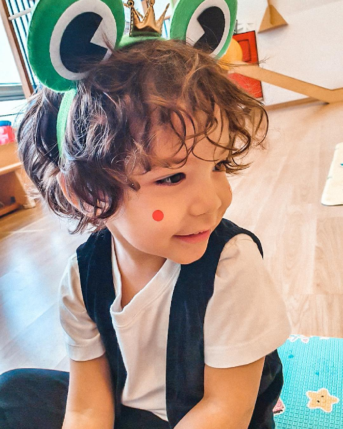 공개된 사진 속 건후는 귀여운 개구리 머리띠를 하고 통통한 볼살을 자랑하고 있다.