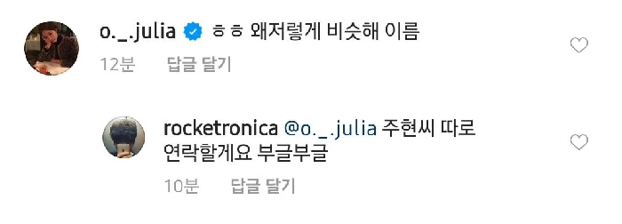 이를 본 핑클 멤버 옥주현은 “ㅎㅎ왜 저렇게 비슷해 이름”이라고 댓글을 달았다.