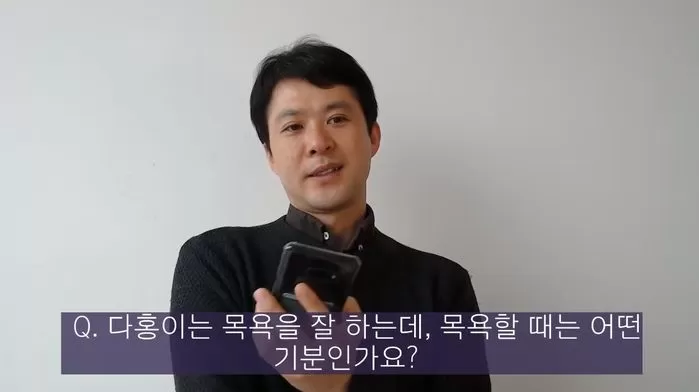 그러면서도 다홍이가 목욕하는 것을 좋거나 싫거나 하는 마음을 보이지는 않는다고 했다.