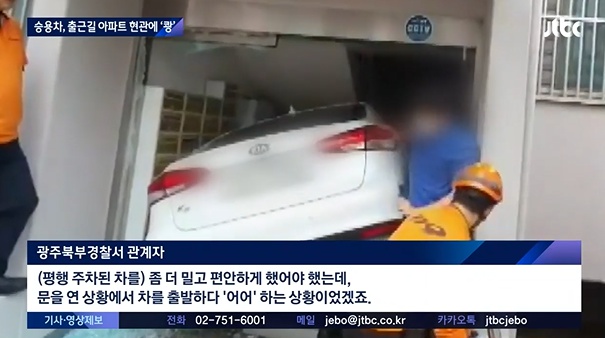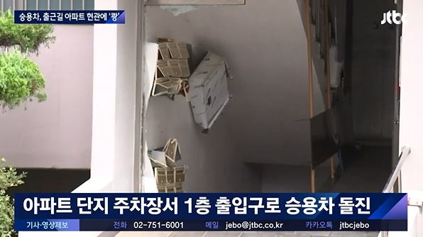 21일 JTBC뉴스는 오전 7시 40분쯤 광주 북구 삼각동의 한 아파트 단지 주차장에서 승용차가 1층 출입구로 돌진했다고 보도했다.