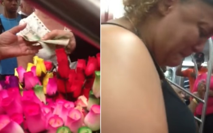 바로 그때, 꽃을 팔지 못하고 있던 여성에게 한 남성 승객이 다가와 행운을 안겨주었다.