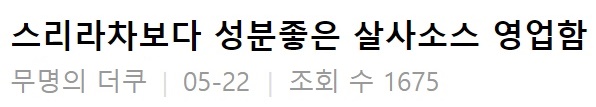 “사람들 아직도 스리라차소스 ‘0칼로리’ 아닌거 은근히 모르더라..?” “사람들 아직도 스리라차소스 ‘0칼로리’ 아닌거 은근히 모르더라..?” ADVERTISEMENT ADVERTISEMENT ADVERTISEMENT ADVERTISEMENT ADVERTISEMENT ADVERTISEMENT ADVERTISEMENT ADVERTISEMENT ADVERTISEMENT ADVERTISEMENT ADVERTISEMENT ADVERTISEMENT ADVERTISEMENT [저작권자 NEWSNACK/ 무단복사, 무단전재 및 재배포 금지 (위반 시 법적조치)]