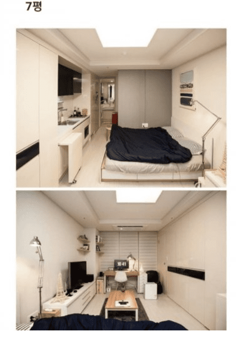 7평, 8평부터 큰 침대를 놓아도 따로 휴식공간을 만들 수 있는 크기였다.