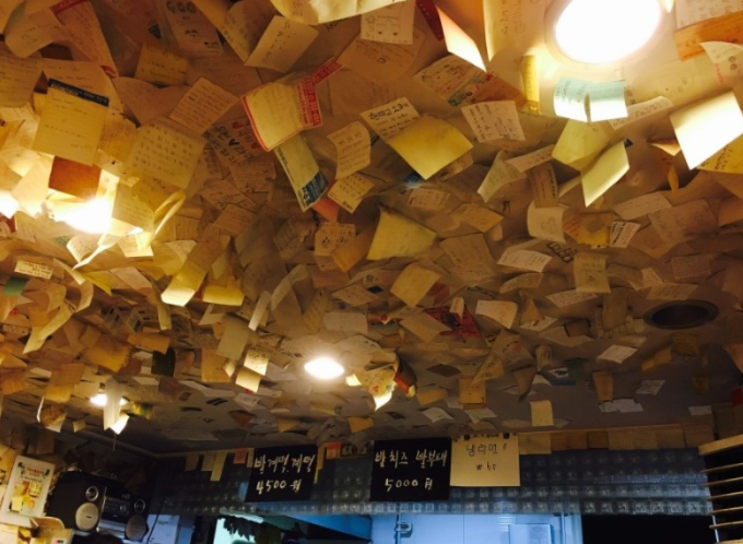 체인점마다 다르기는 하지만 낙서가 유난히 많이 붙어 있기로도 유명한데, 단, 카페 분위기의 홍대점, 평촌점의 경우 전혀 없다.