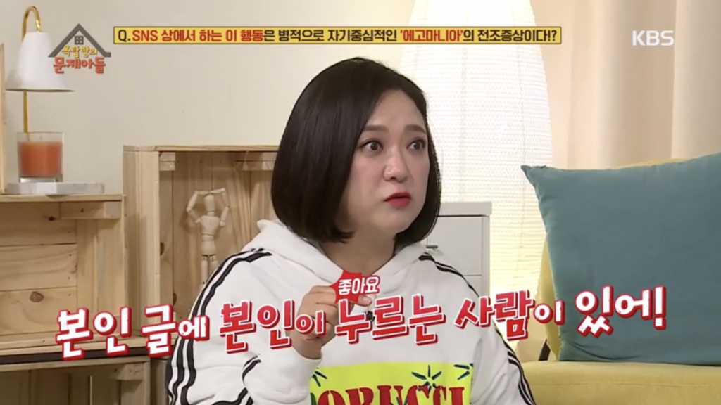 제작진은 “영국의 정신분석학자 스티브 박사에 의하면 SNS상에서 ‘이 행동’을 자주 하는 것은 병적으로 자기중심적인 사람을 뜻하는 에고 마니아의 전조증상이라고 한다”며 “어떤 행동일까?”라고 물었다.