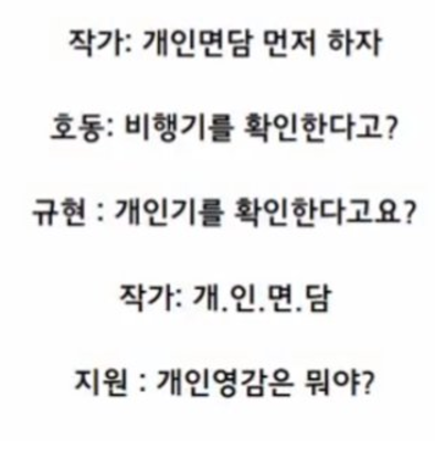 작가는 출연진에게 개인면담을 제안한다.