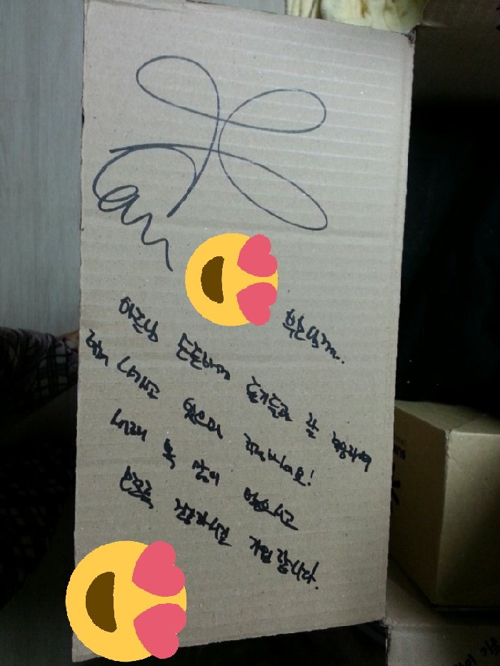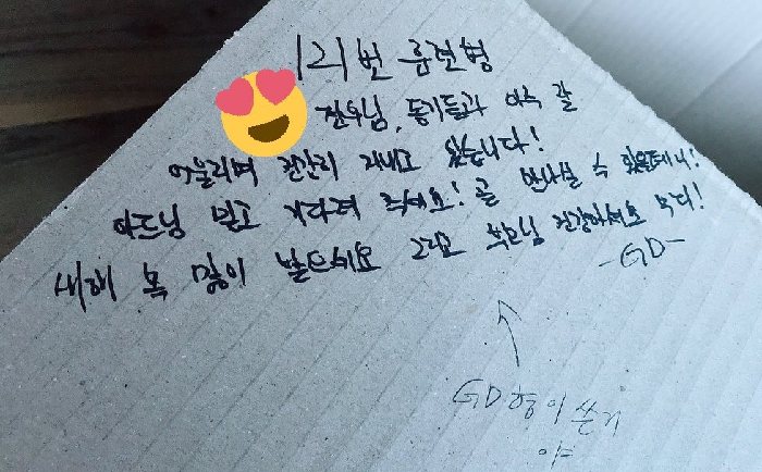 지드래곤이 사인을 해 준 곳은 다름아닌 택배박스.